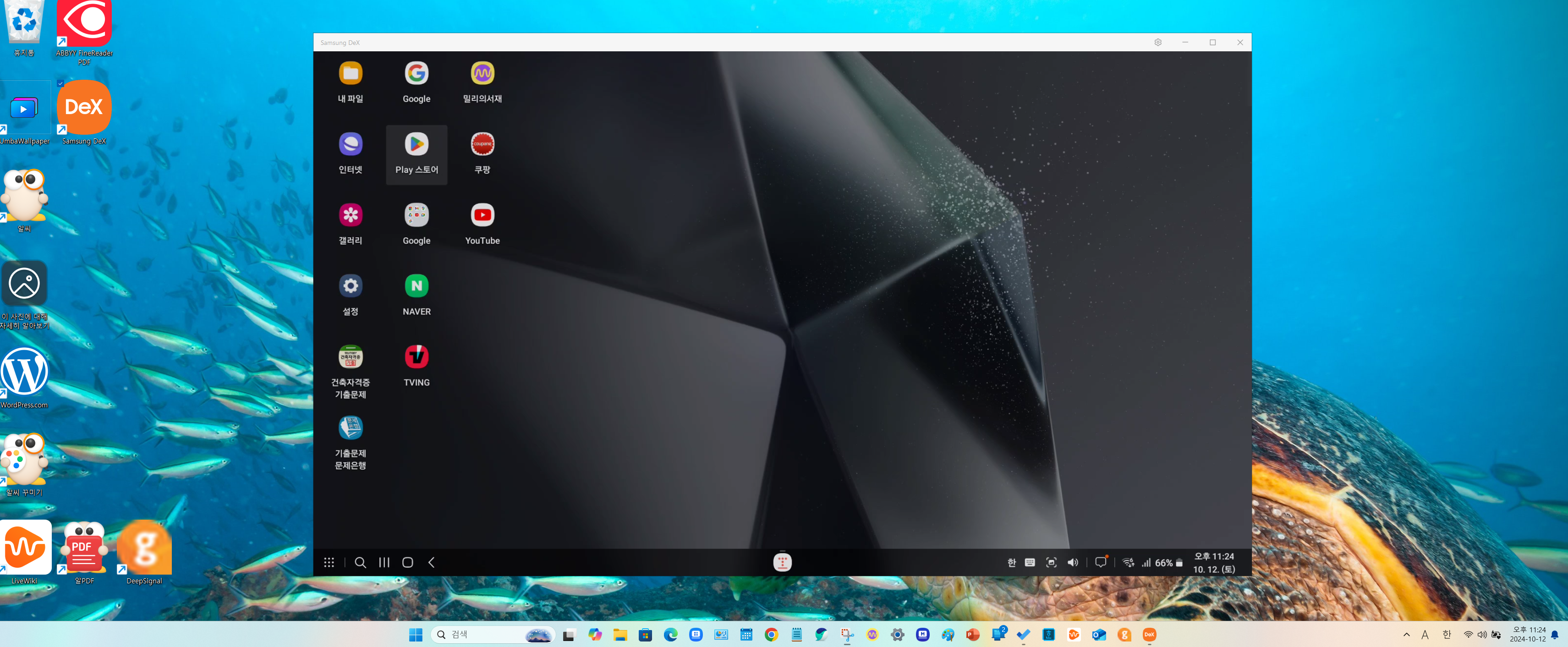 연결이 완료되면 PC 화면에 삼성 덱스 환경이 표시됩니다. 이 환경은 일반 PC의 데스크톱과 유사하여 여러 애플리케이션을 동시에 사용할 수 있습니다.