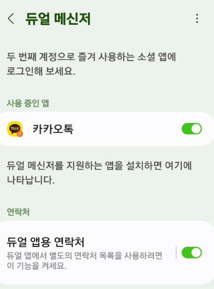 갤럭시 스마트폰 사용자는 삼성의 듀얼 메신저 기능을 활용하면 쉽게 두 개의 카카오톡 계정을 사용할 수 있습니다.