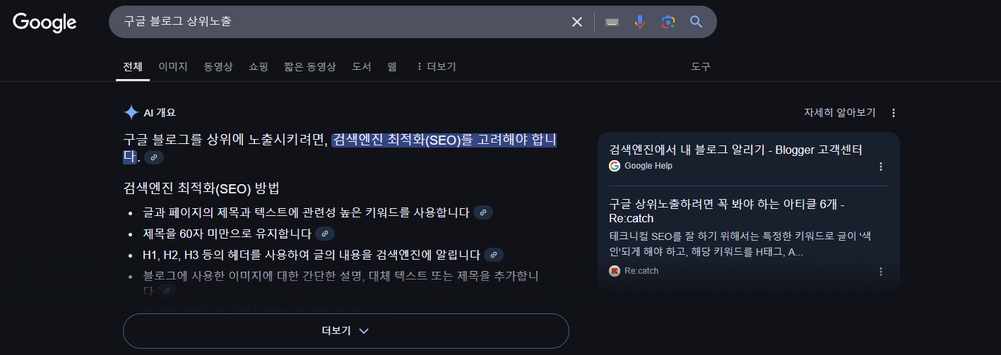✅ "구글 블로그 최적화"
