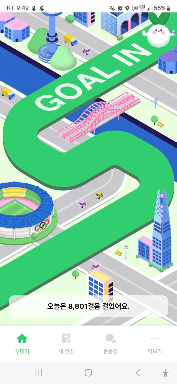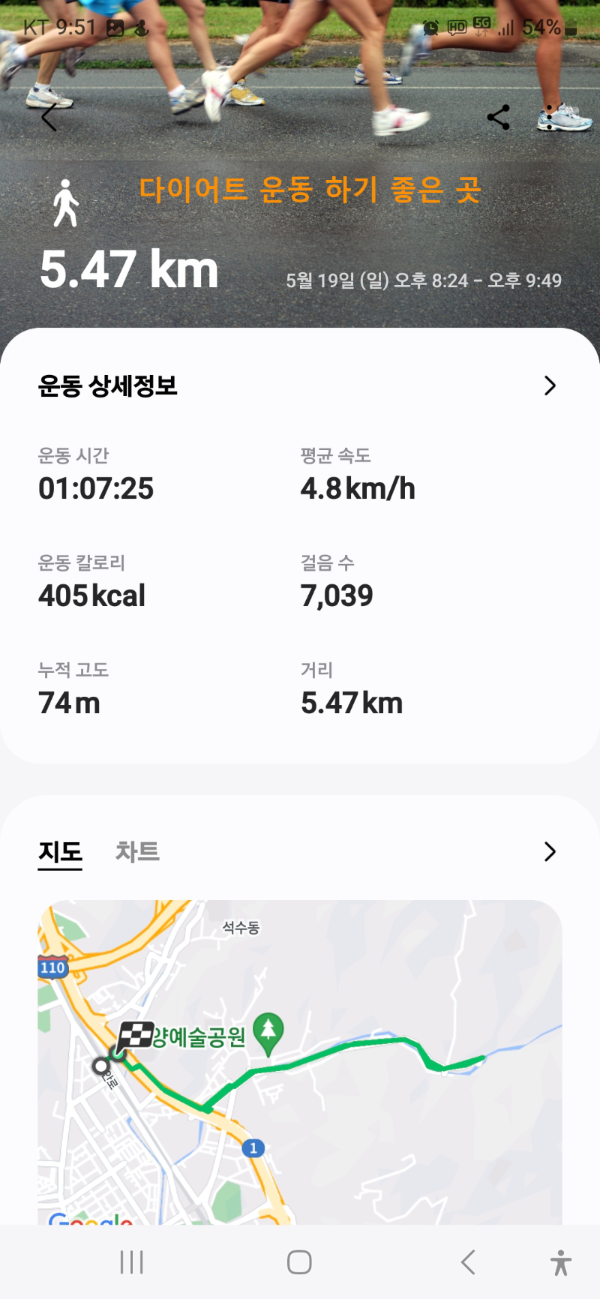 기록측정은 가끔 삼성헬스 스마트폰 앱을 사용하여 운동시간이나 걸음수 측정을 해보는데 괜찬은 앱이다.