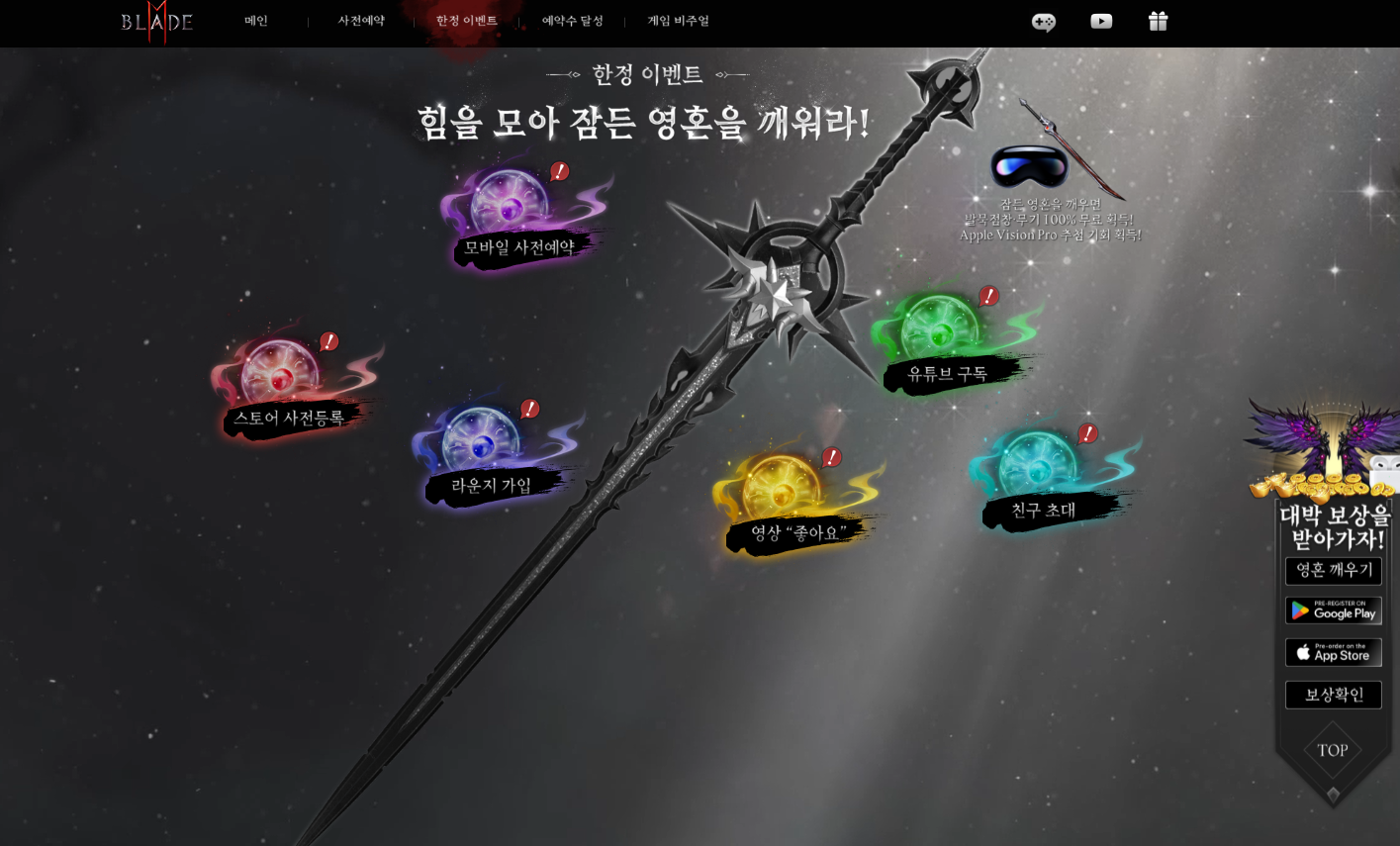 오늘부터 블레이드 M 게임 사전예약 이벤트가 시작되었습니다. 사전예약 이벤트는 기간 동안 공식 홈페이지 또는 구글, 애플, 원 스토어 등을 통해 참여하여 게임도 하고 이벤트 상품도 받아갈 수 있는 기회를 놓치지 마시기를 바랍니다.