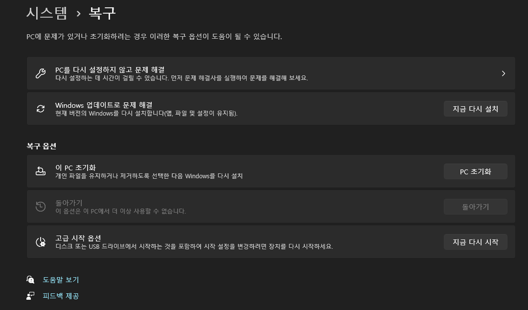 2. 윈도우 11 초기화 방법 (포맷 없이 공장 초기화)