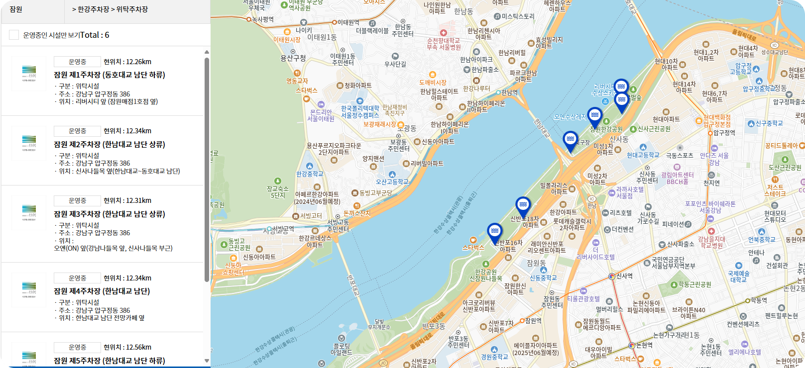 한강 잠원 야외 수영장 이용객을 위한 주차장 안내
