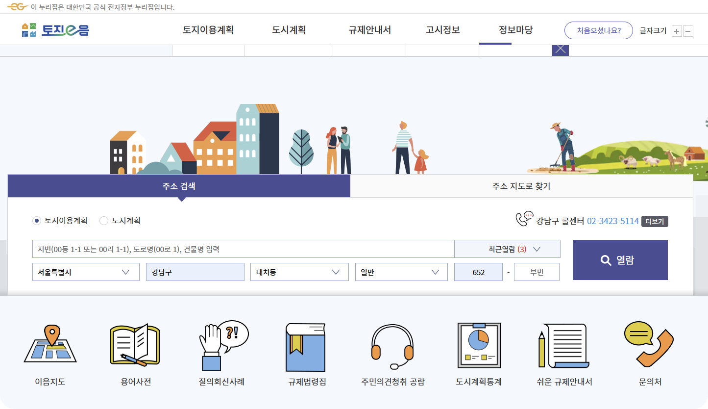 토지이음지도 사이트에서 토지이용계획 또는 도시계획 등 확인하는 방법