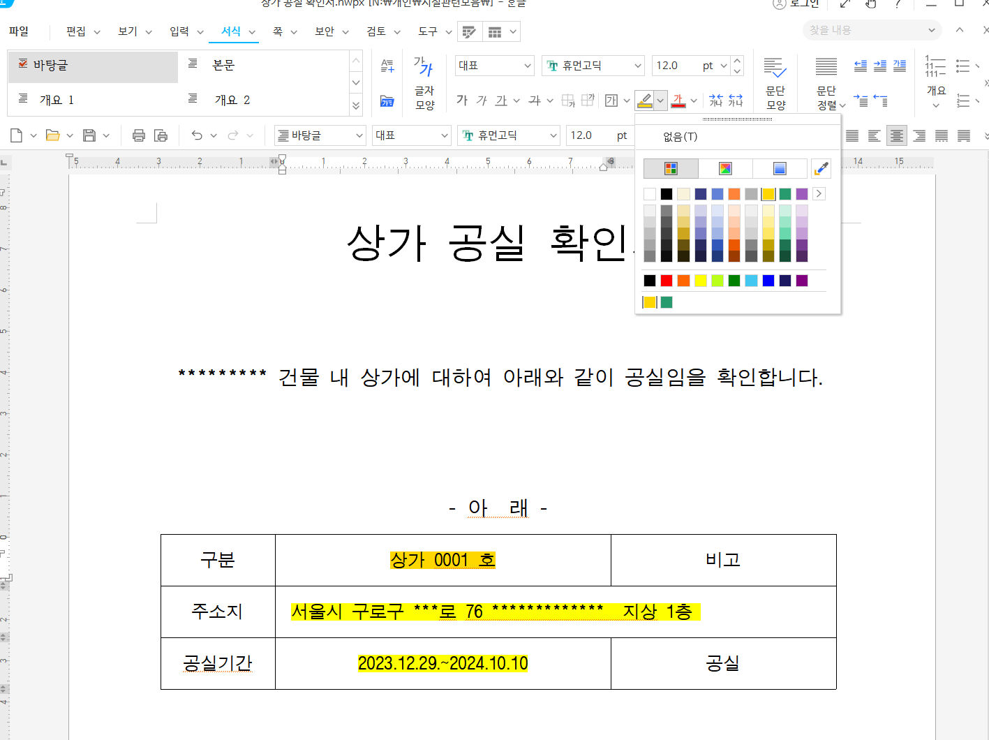 한컴 오피스 2022 버전 기준으로 한글 워드 문서 작성 시 형광펜 기능을 사용하면 문서의 중요한 부분을 쉽게 강조할 수 있습니다.